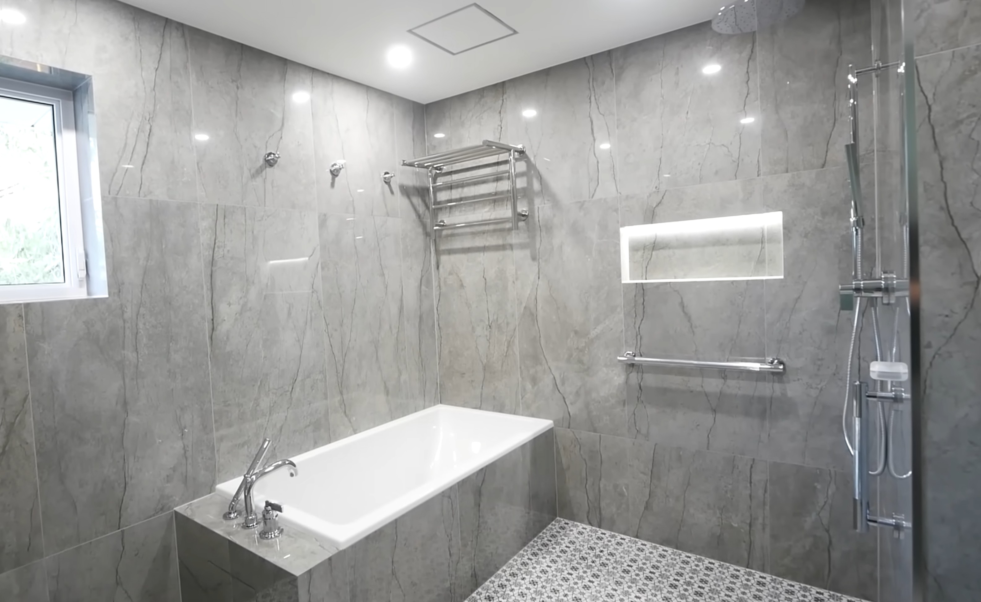 Explore this Woodinville bathroom remodel featuring modern tile, updated fixtures, and a fresh new design.